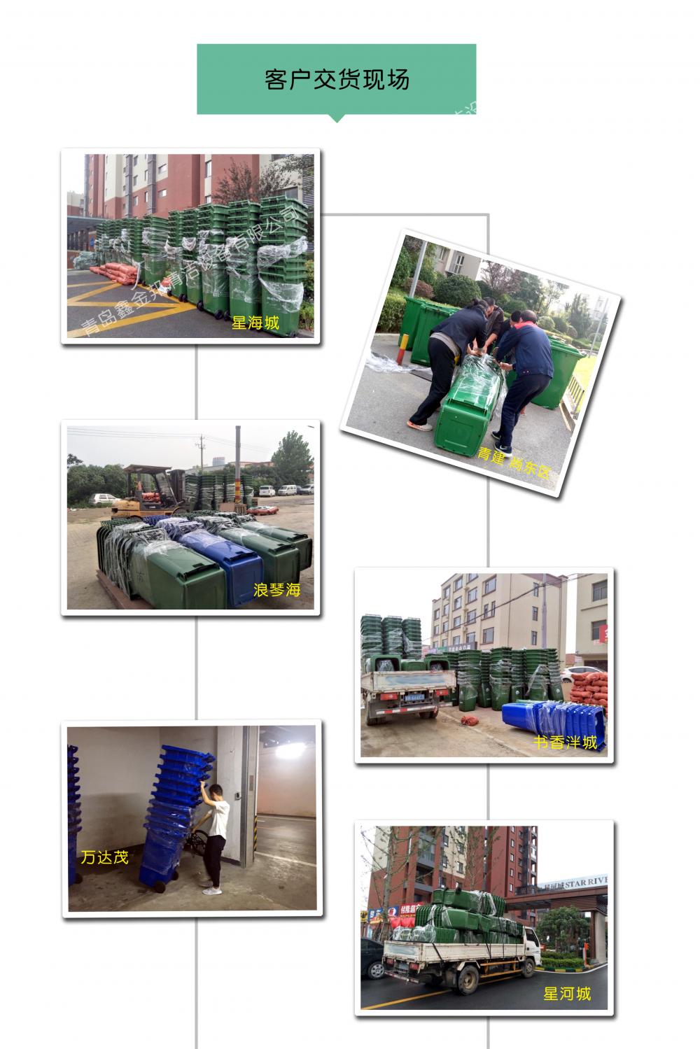 240升塑料垃圾桶采用環(huán)保材料特別加厚注塑而成,桶身表面光滑,方便環(huán)保人員清理。底部裝有靜音輪子,方便運輸,使用壽命長,可配合和垃圾車使用。適用于:物業(yè)小氣、廚房、街邊等。青島鑫金邦垃圾桶質(zhì)量無憂、信譽有保障,歡迎來電咨詢!