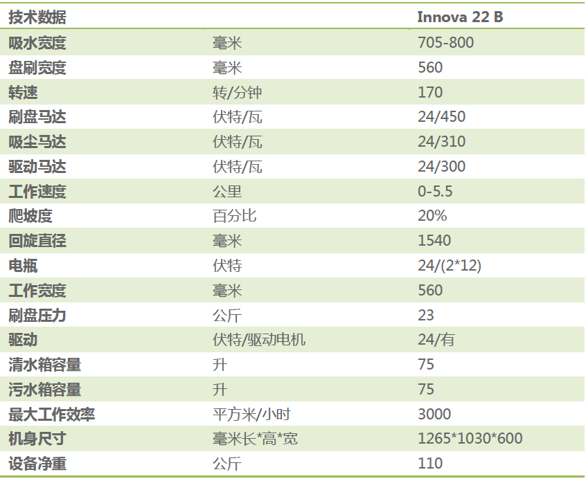 意大利COMAC駕駛式洗地機(jī)Innova22B產(chǎn)品特點(diǎn):1、配備高性能出口型免維護(hù)電瓶,使用壽命更久、動(dòng)力更強(qiáng),可有效延長連續(xù)工作時(shí)間。2、節(jié)省清潔所用時(shí)間,完成1000㎡的地面清洗任務(wù)僅需20分鐘。3、清潔效率是傳統(tǒng)人力清洗的幾十倍,并且清潔效果更出色,噪音低,一臺(tái)洗地機(jī)能節(jié)省10幾名工人的開支,有效降低了清潔成本問題,管理維護(hù)成本極低,省力、更省錢!4、操作面板簡單、易懂,鑫金邦免費(fèi)提供上門培訓(xùn)服務(wù),“保潔大媽也能操作自如”。5、適用環(huán)境:小區(qū)物業(yè)、工廠車間、市政單位、商場、車站機(jī)場、廣場、公園、學(xué)校、醫(yī)院、倉庫、停車場等地。